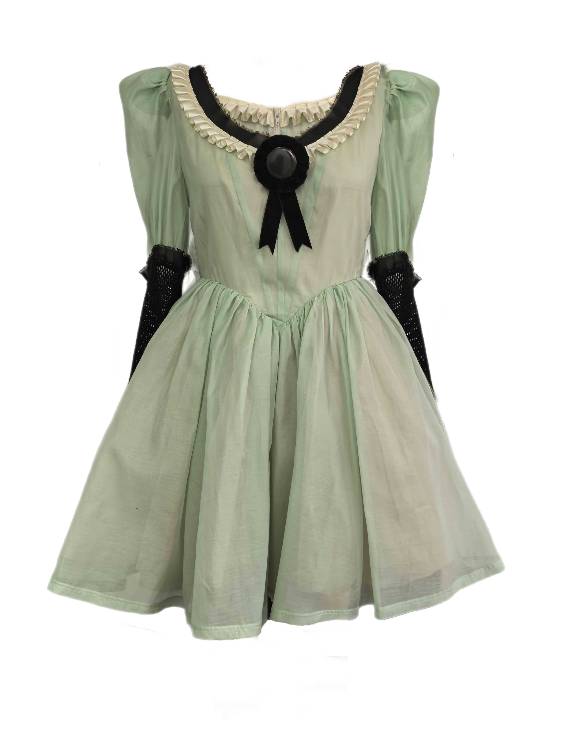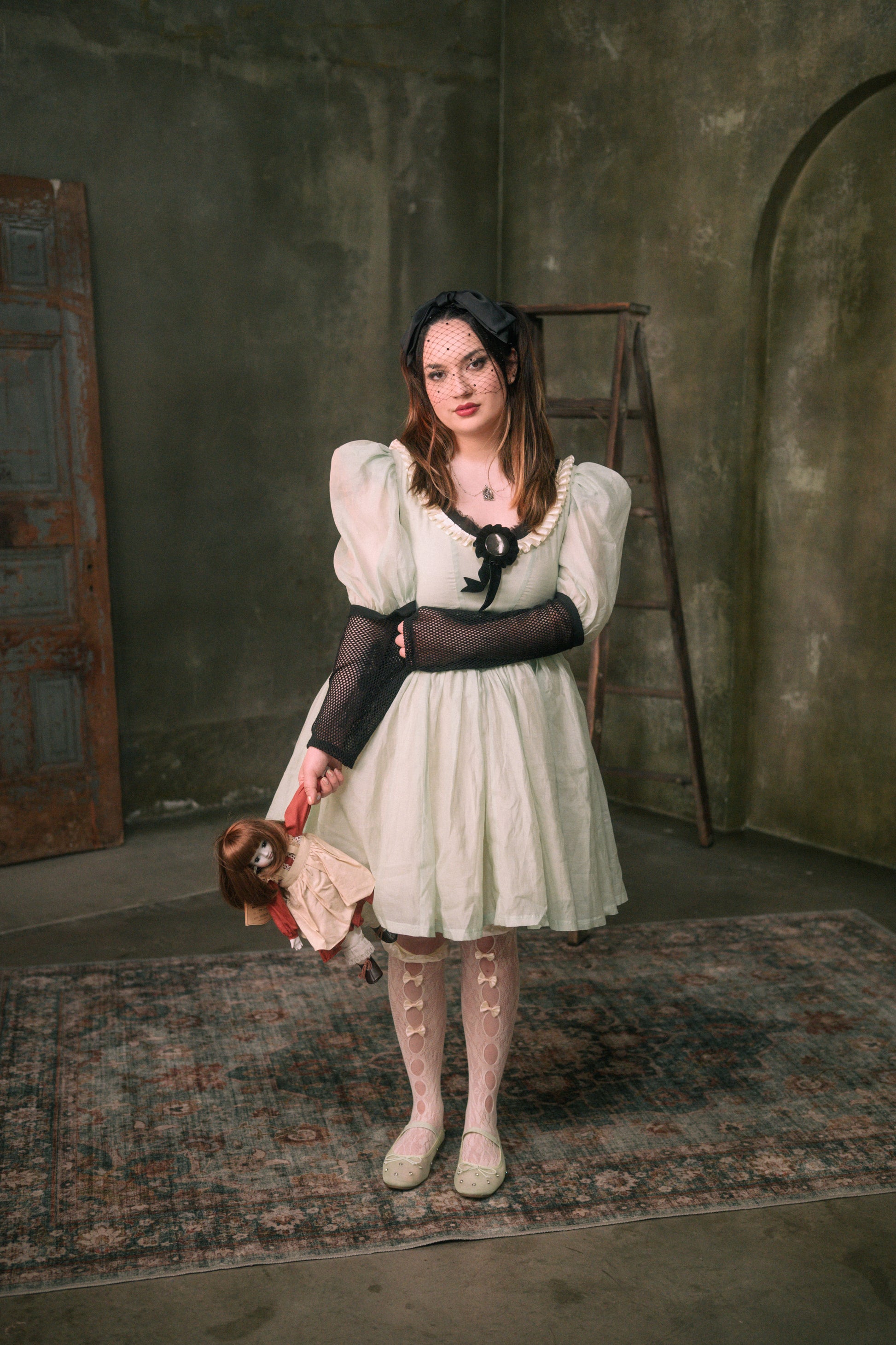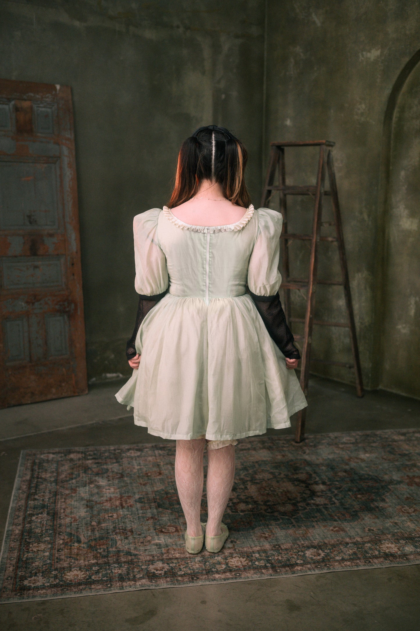 The “Baudelaire" Dress is an elegant and comfortable cotton-silk mini dress. This dress features flattering princess seams to hug your natural figure, voluminous puff sleeves with black fishnets to add a 2000s gothic flair, 22" lapped zipper, 6" deep pockets (they can hold wallets, phones, & more with ease!), and a gorgeous drop waist. It's the perfect garment for gazing out of a rain soaked window, exploring a gloomy garden, or wandering along the creaky wooden floors of a haunted mansion.