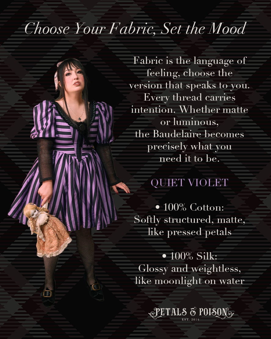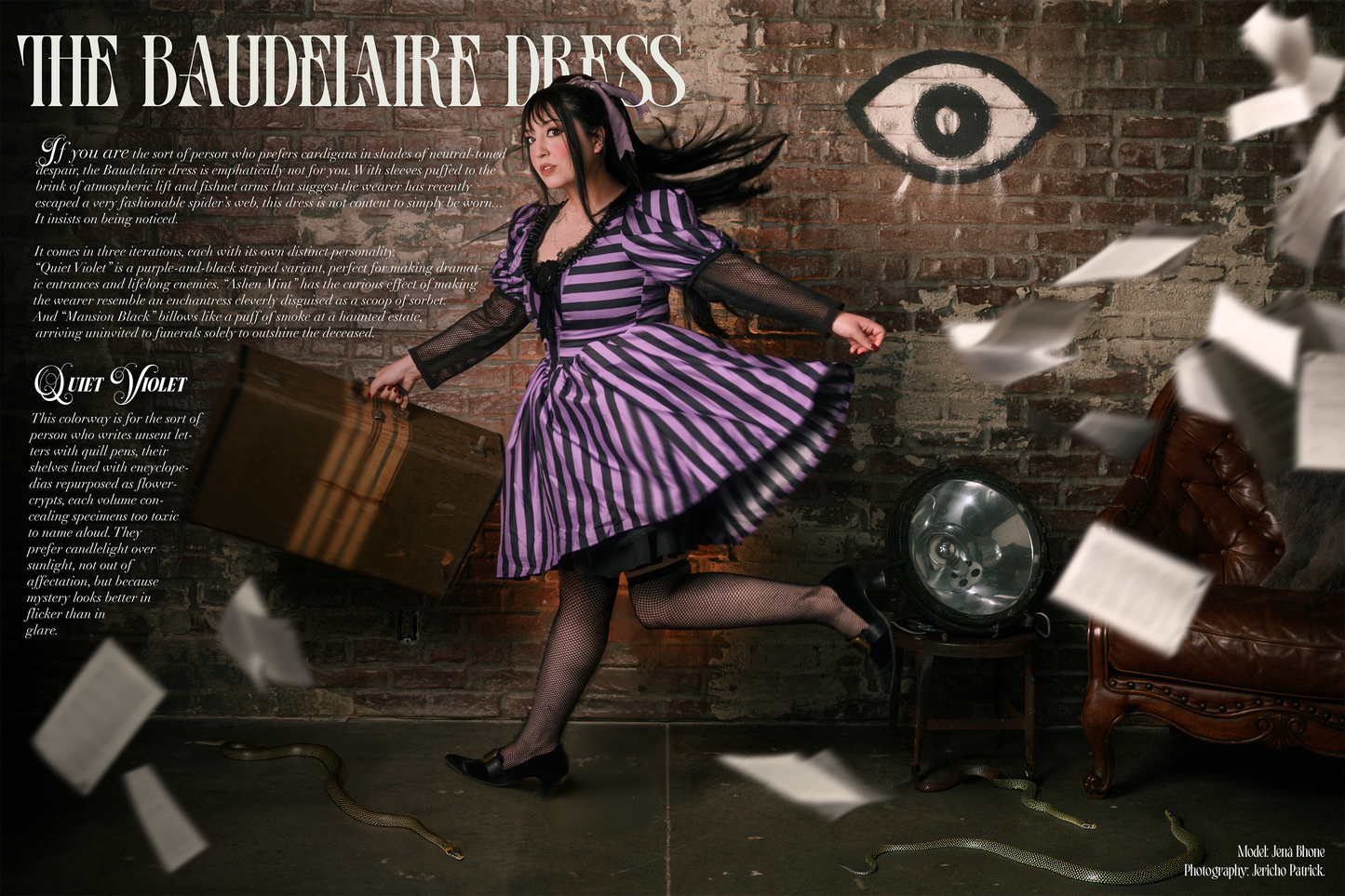 A dress for storm-lit windows, deserted hallways, and slow descents into velvet-draped staircases. The Baudelaire is a romantic gothic mini, designed to flatter and haunt with just a touch of early-2000s melancholy.